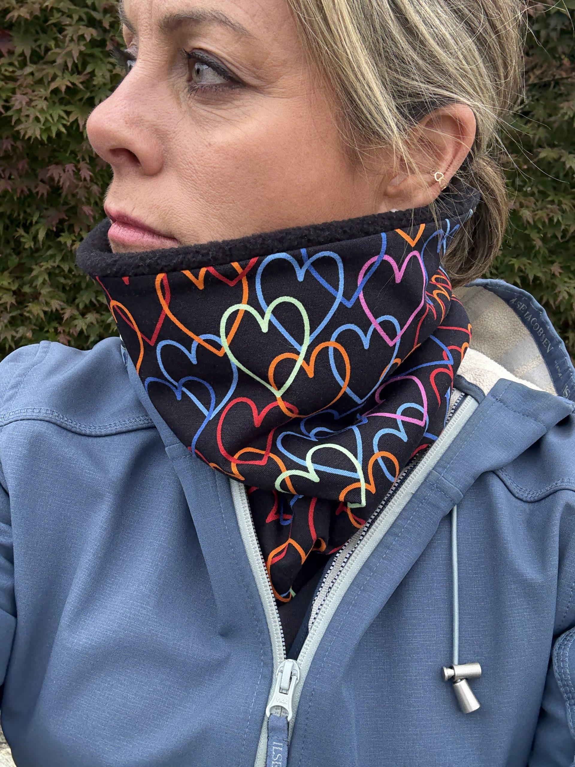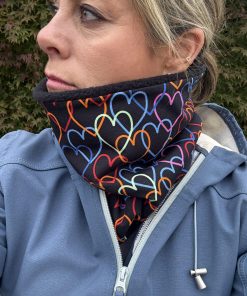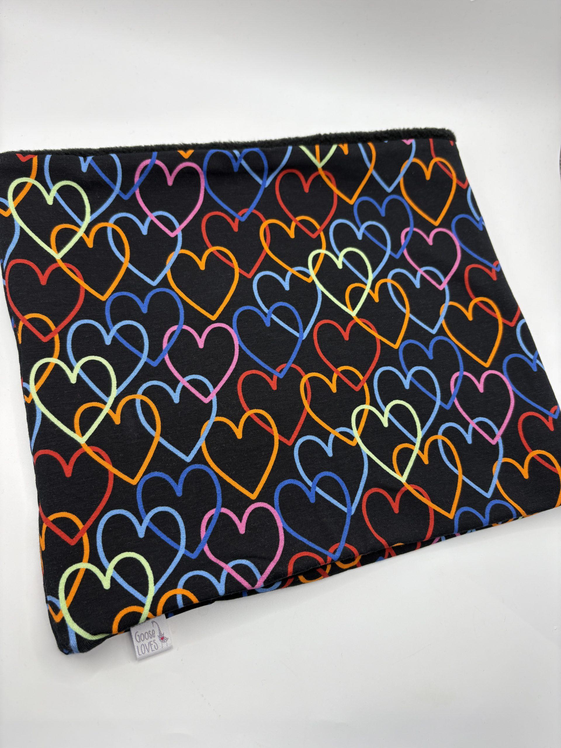 Black with Coloured Hearts Fleece Lined Neckwarmer