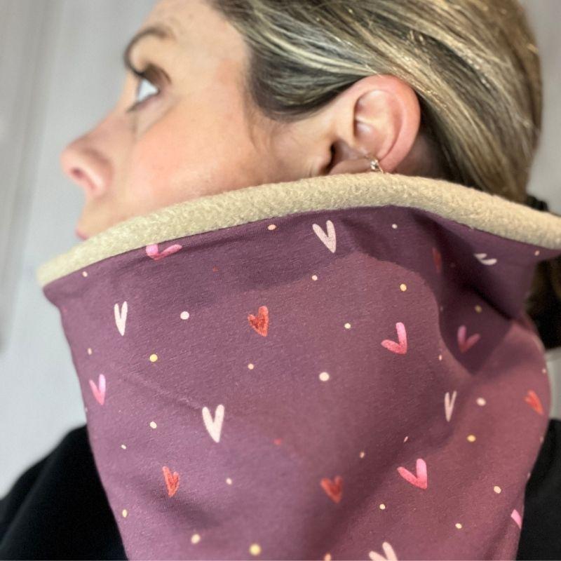 Colourful Hearts and Purple Fleece Neckwarmer