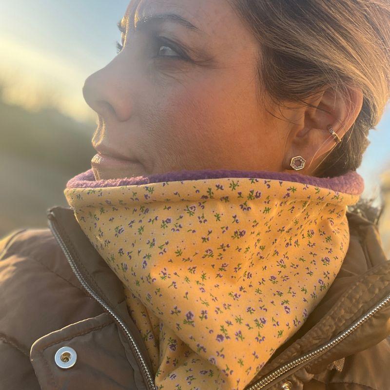 Yellow and Tiny Purple Fleece Lined Neckwarmer